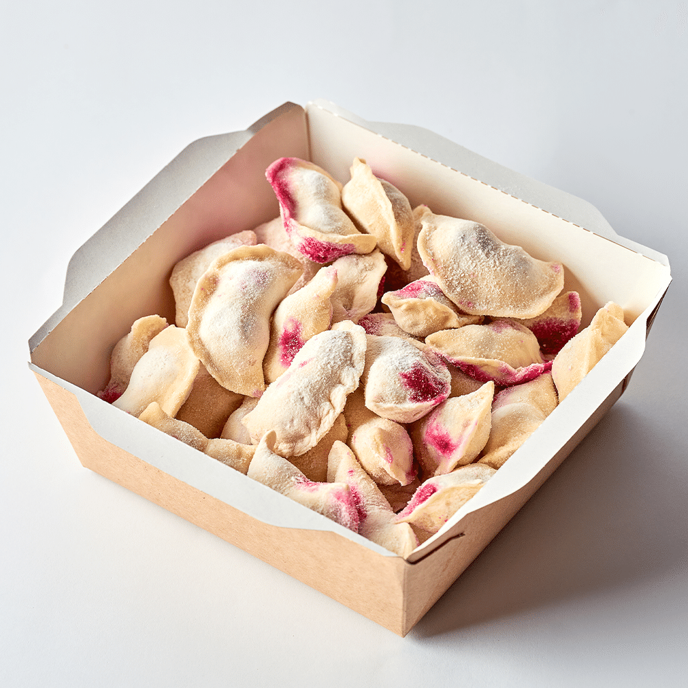 сочные вареники ручной лепки с кисло-сладкой вишнёвой начинкой.