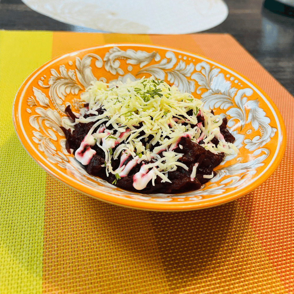 нежная варёная свёкла с пикантной начинкой из тёртого сыра и чеснока.