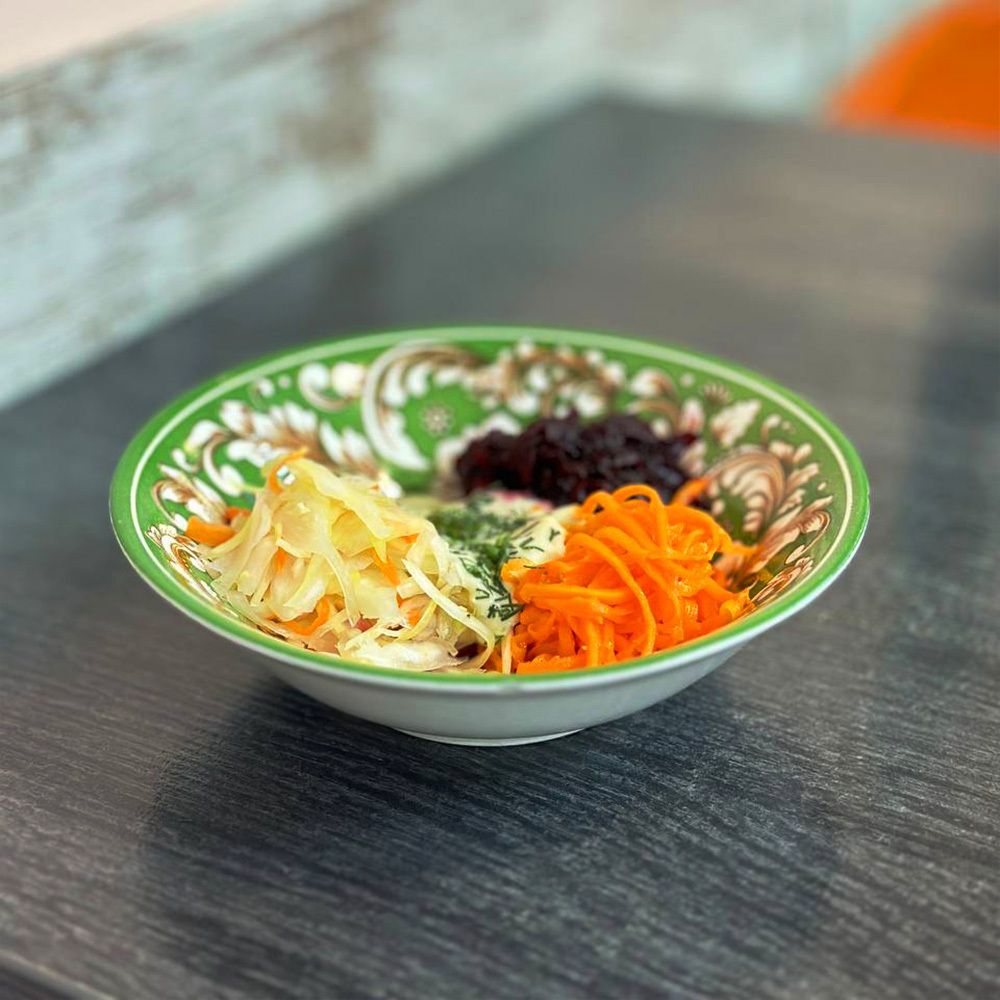 Морковь по-корейски, свекла, капустный салат, соус французский