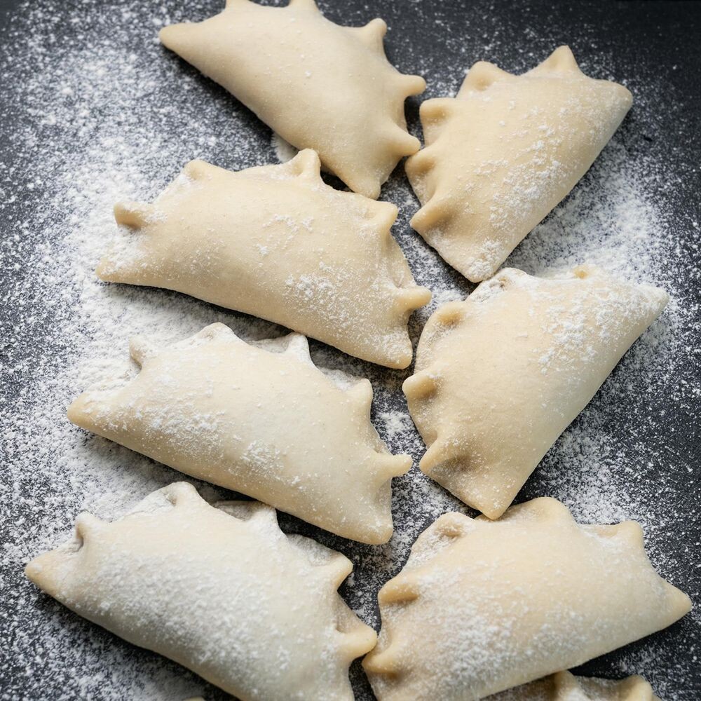 Начинка: Творог Тесто: Пшеничная мука высшего сорта, вода питьевая, яйцо куриное, растительное масло