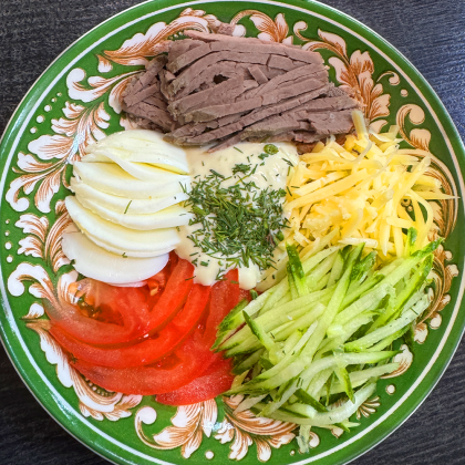 Капуста, свекла, морковь, картофель, горошек, лук, огурец мар., масло